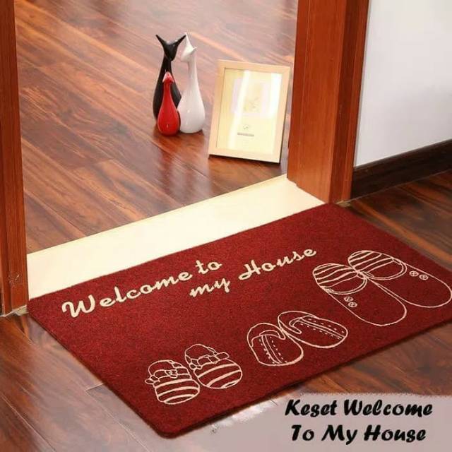 READY- HITAM- COKLAT- MARUUNKeset trendy, ada tulisan "welcome to my house" dan gambar sandal & sepatu. Cocok untuk keset pintu masuk, pintu dapur, pintu kamar tidur. Bagian atas keset model serabut dari bahan polyester, bagian bawah keset (alas) dari bahan anti slip, keset bisa nempel di keramik rumah sehingga tidak berpindah tempat. Bahan keset dapat menyerap air dan debu.Size : 40 x 60 x 0