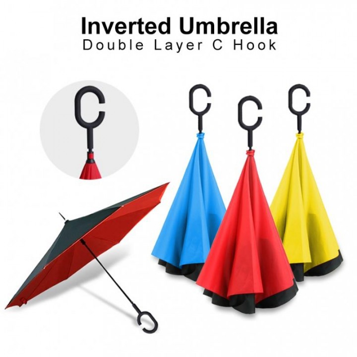 Upside Down Umbrella is awesome. No one will forget you in the rain when you unleash this umbrella! But this is no gimmick or joke, it works brilliantly and is super easy to open up and protect you from the elements.It can stand up on its own, ideal for when you have nowhere to prop your umbrella up against. It will also keep the wet part of the umbrella inside once you've closed it, meaning things don't get dripped on when you put it away after coming indoors. Instead, the water runs off while enclosed by the folds of the canopy.Contoh Video penggunaan Upside Down Umbrella (payung yg tersedia sesuai gambar): https://youtu.be/phdeprKdVwU*Note : jika warna yang dipilih tidak ada otomatis diganti dengan warna yang ter