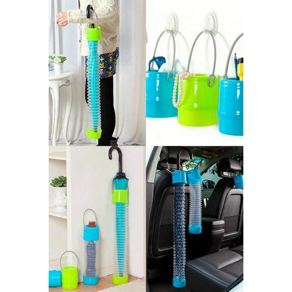 READY : hitamCANTUMKAN WARNA YANG DIORDER DI KOLOM KETERANGAN. JIKA TIDAK, MAKA AKAN DIKIRIM WARNA RANDOM !!Paling sebel jika sudah ketemu musim hujan. Repot menyimpan payung yang sudah basah sehabis dipakai. Tetesan air dari payung jadi mengotori mobil atau rumah.Gak perlu sebel, solusinya dengan memakai tempat payung flexible. Tempat payung dengan design unik, bisa dipanjang pendek.Saat sedang tidak dipakai, tempat payung ini bisa dilipat jadi ukuran kecil berbentuk rak mini. Saat hendak dipakai tempat payung bisa dipanjangkan hingga 65 cm. Bagian dalam tempat payung tersimpan plastik lipat flexible yang jika ditarik jadi memanjang dan jika ditutup jadi memendek.Dengan tempat payung flexiblet ini tetesan air dari payung tersimpan di dalam holder, tetesan air payung tidak bakal mengotori rumah atau mobil anda.Dilengkapi tali tentengan dari bahan plastik, bisa ditenteng dan digantung ke belakang jok mobil atau tembok rumah. Saat sedang tiidak dipakai, tempat payung dapat difungsikan sebagai rak mini untuk tempat aksesoris atau alat tulis, multifungsi loh...Material : PlastikSize :- 9 x 11 cm (kondisi tertutup)- 9 x 65 cm (kondisi ter