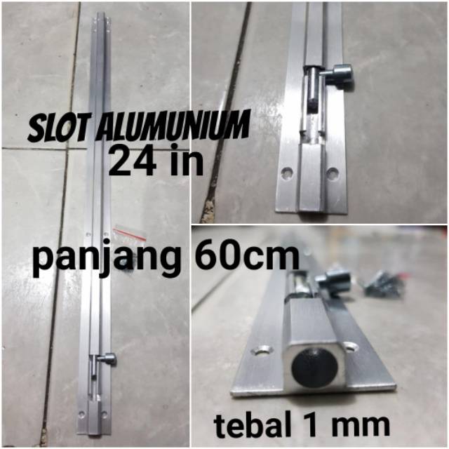 slot /grendel 24in pintu berbahan alumunium tebal 1mm. kualitas lebih awet dan anti karat.panjang slot 60cm. sudah termasuk se